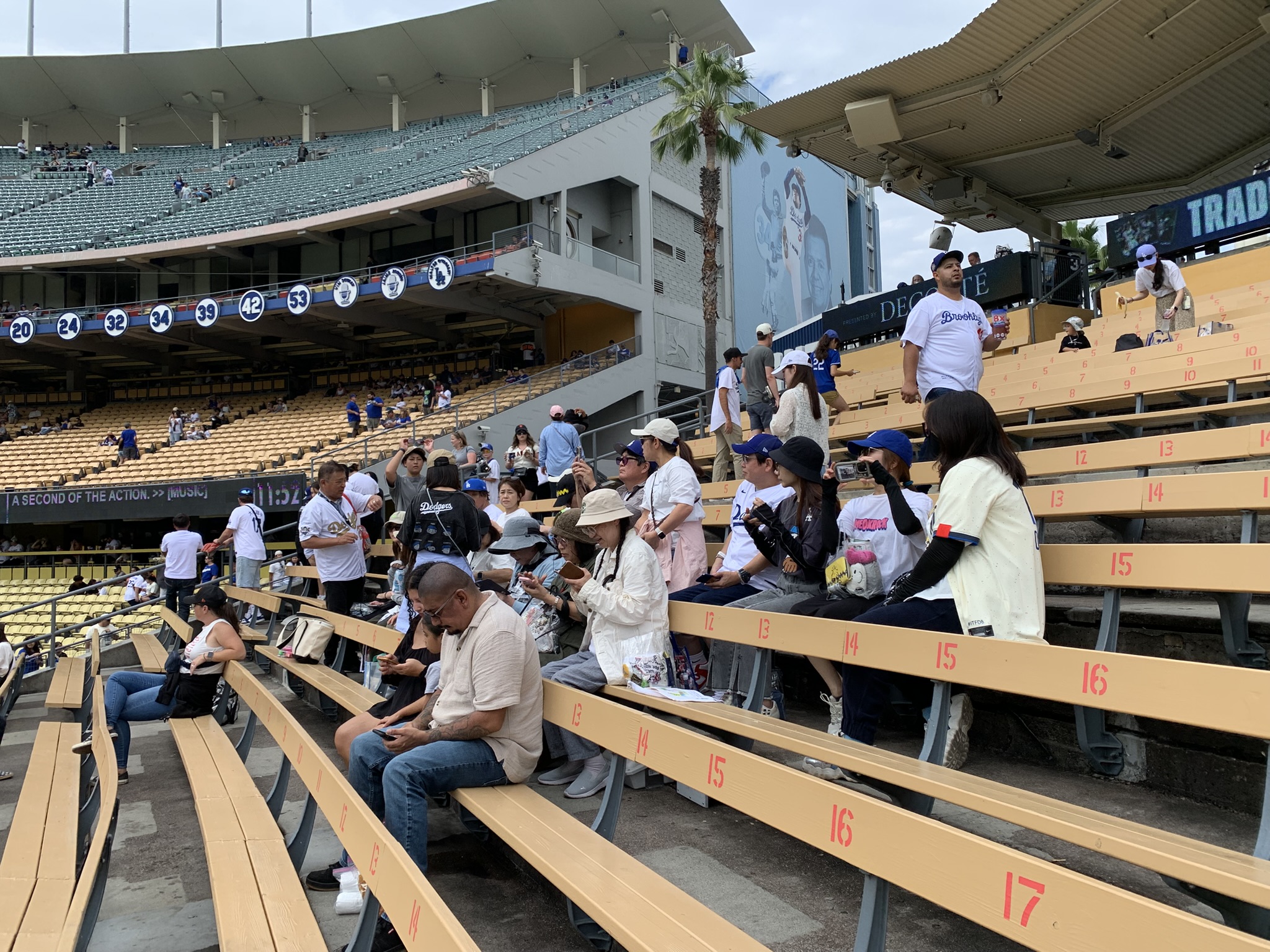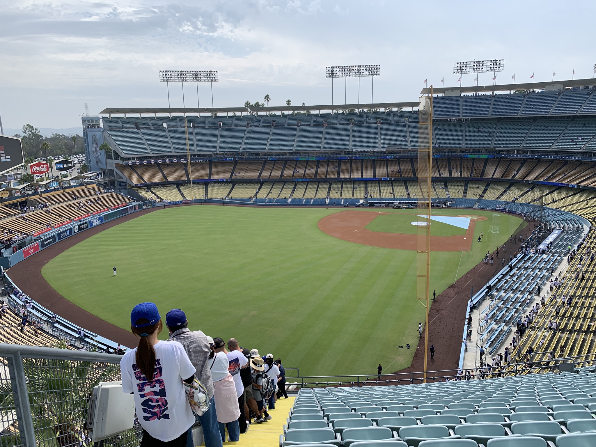 ユニバーサルのお客様をバスで送ってから、ドジャースタジアムに向かいます。ロサンゼルスらしい、晴れ渡った空がとても気持ち良いです。