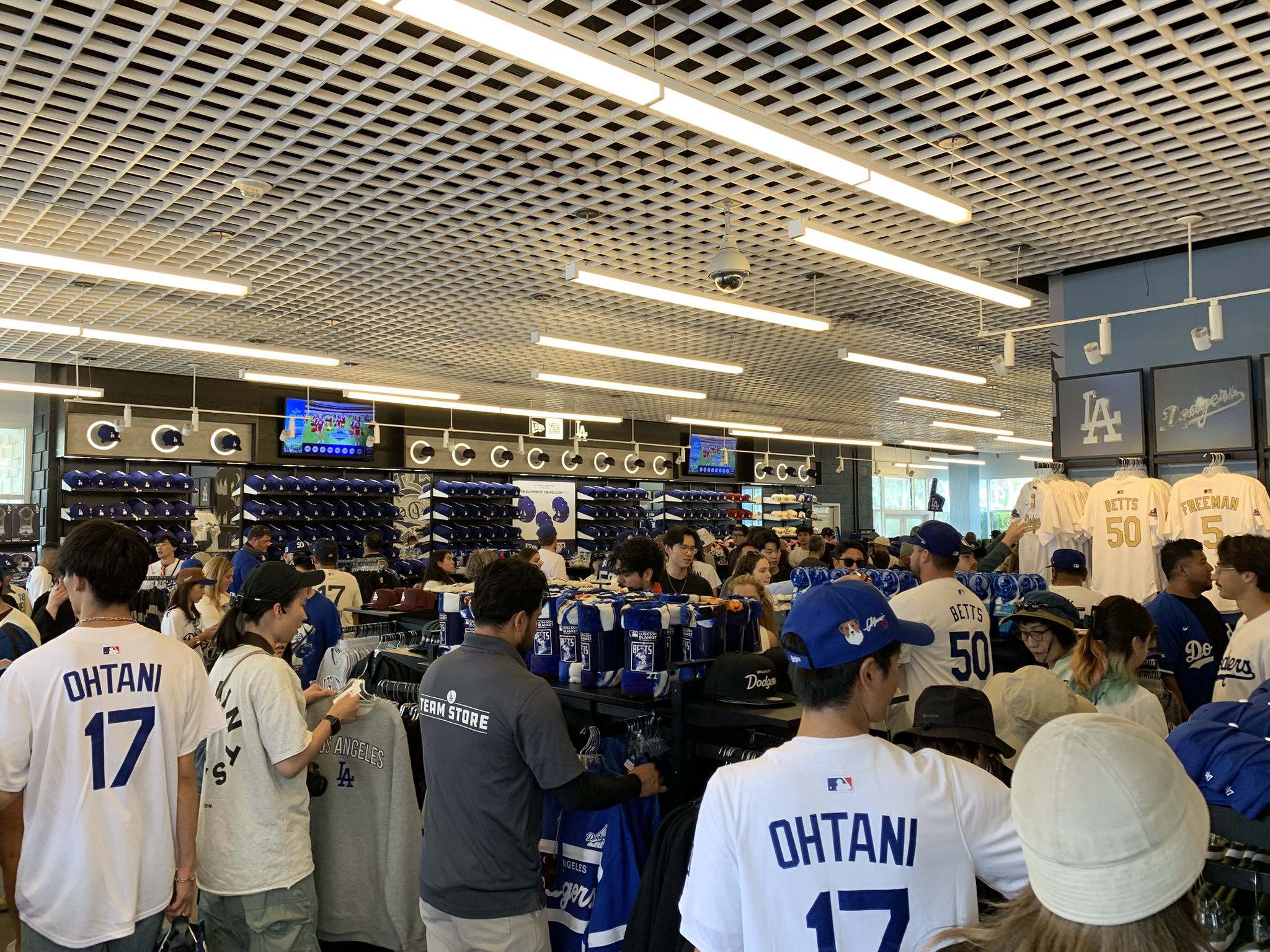 私の今回のお目当ては、ニューエラ「My 1st」キャップ。ツアーの添乗員さんから、ドジャースドッグのぬいぐるみもあると聞いたのですが、今回はタイミングが悪かったのかどのショップにも置いていませんでした。