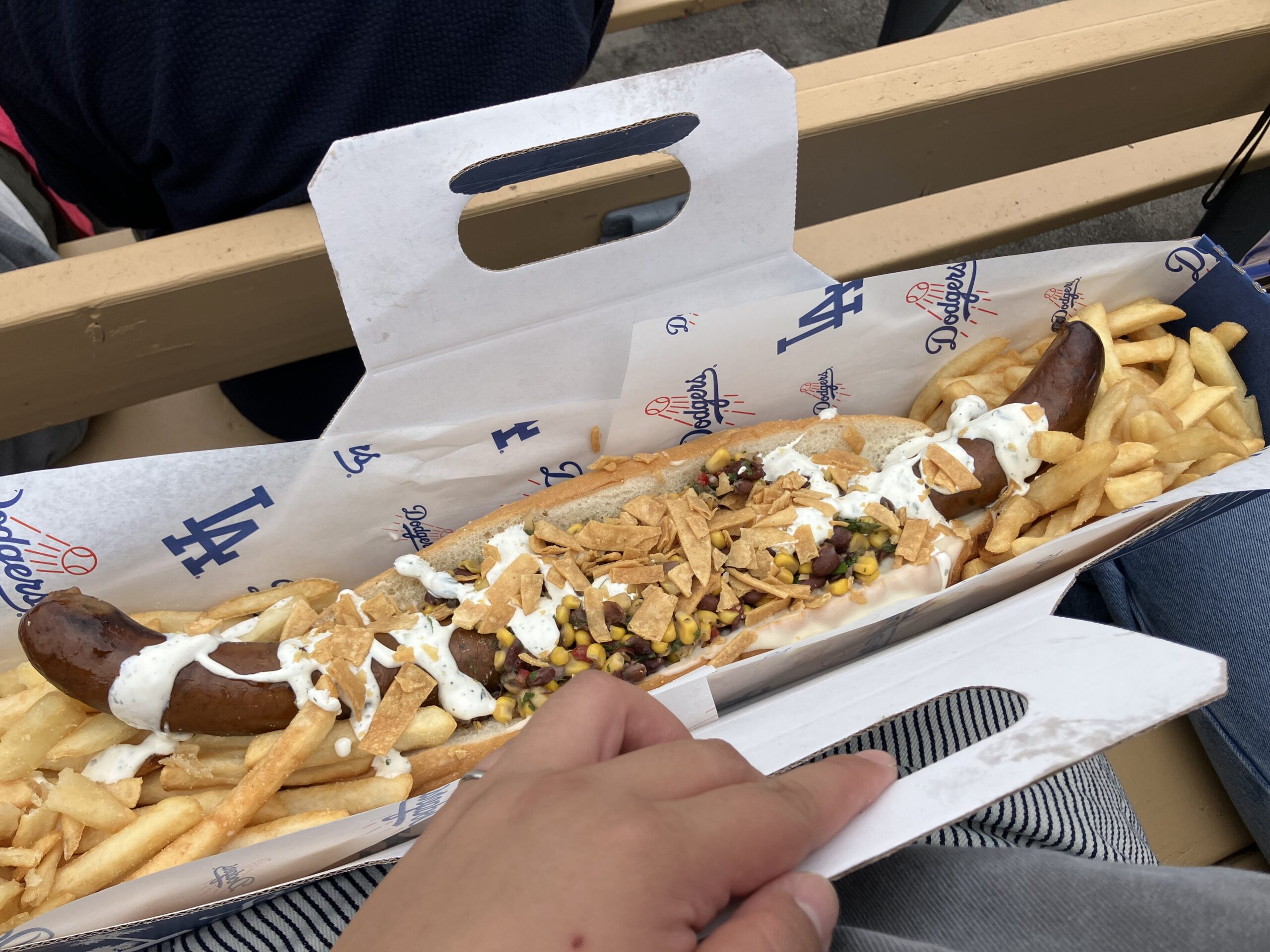 辛いのが苦手な方は(私もそんなに得意ではないんですが…)、普通のドジャースドッグを買った方が良いです…。他のスタッフはこっちを食べていました。