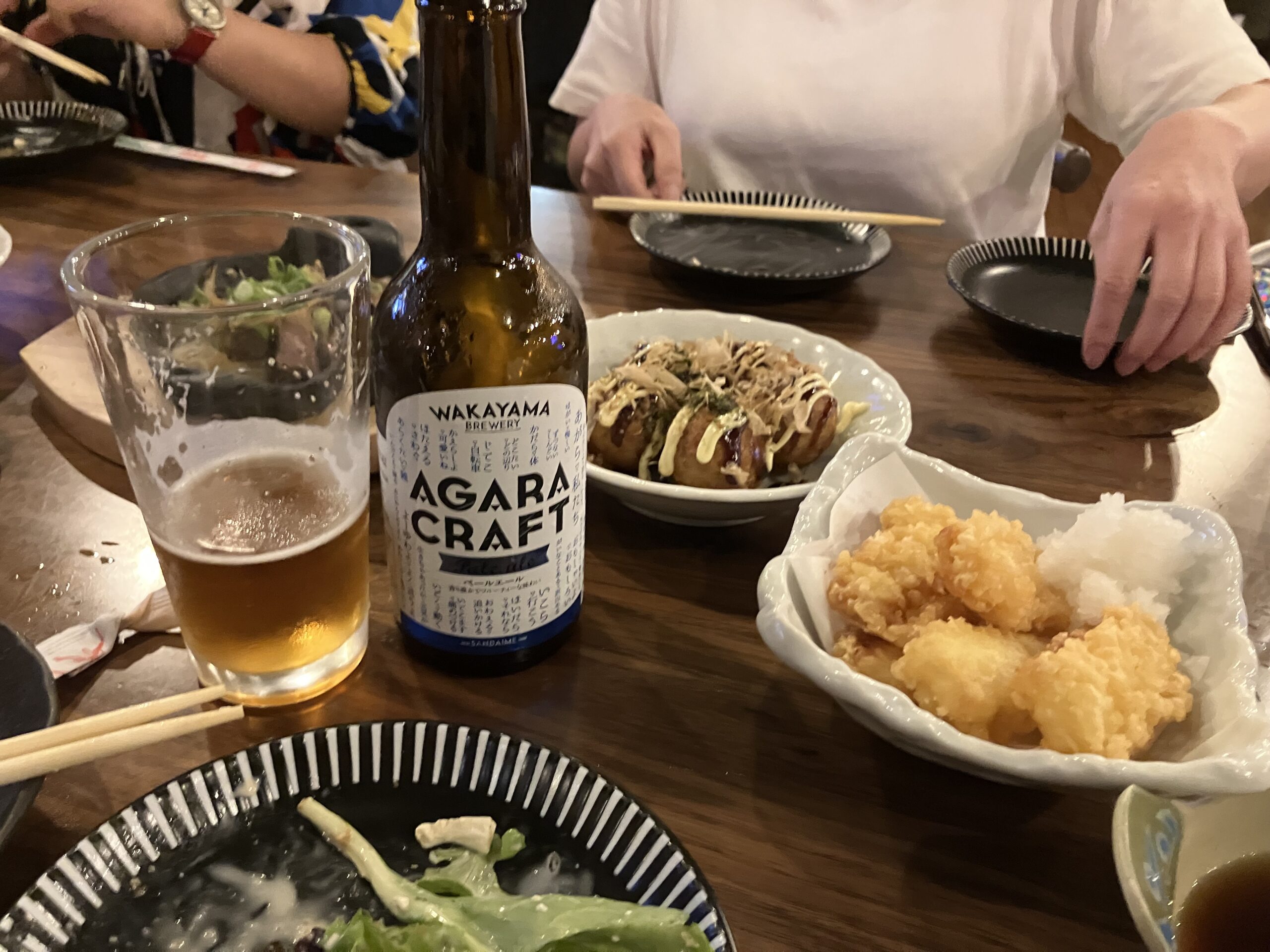 ホテルの朝食を提供している「HAPPA」というレストランですが、ここは夜になると日本風の居酒屋に変身します。たこ焼きやイカの天ぷら、なぜか和歌山のクラフトビールetc.