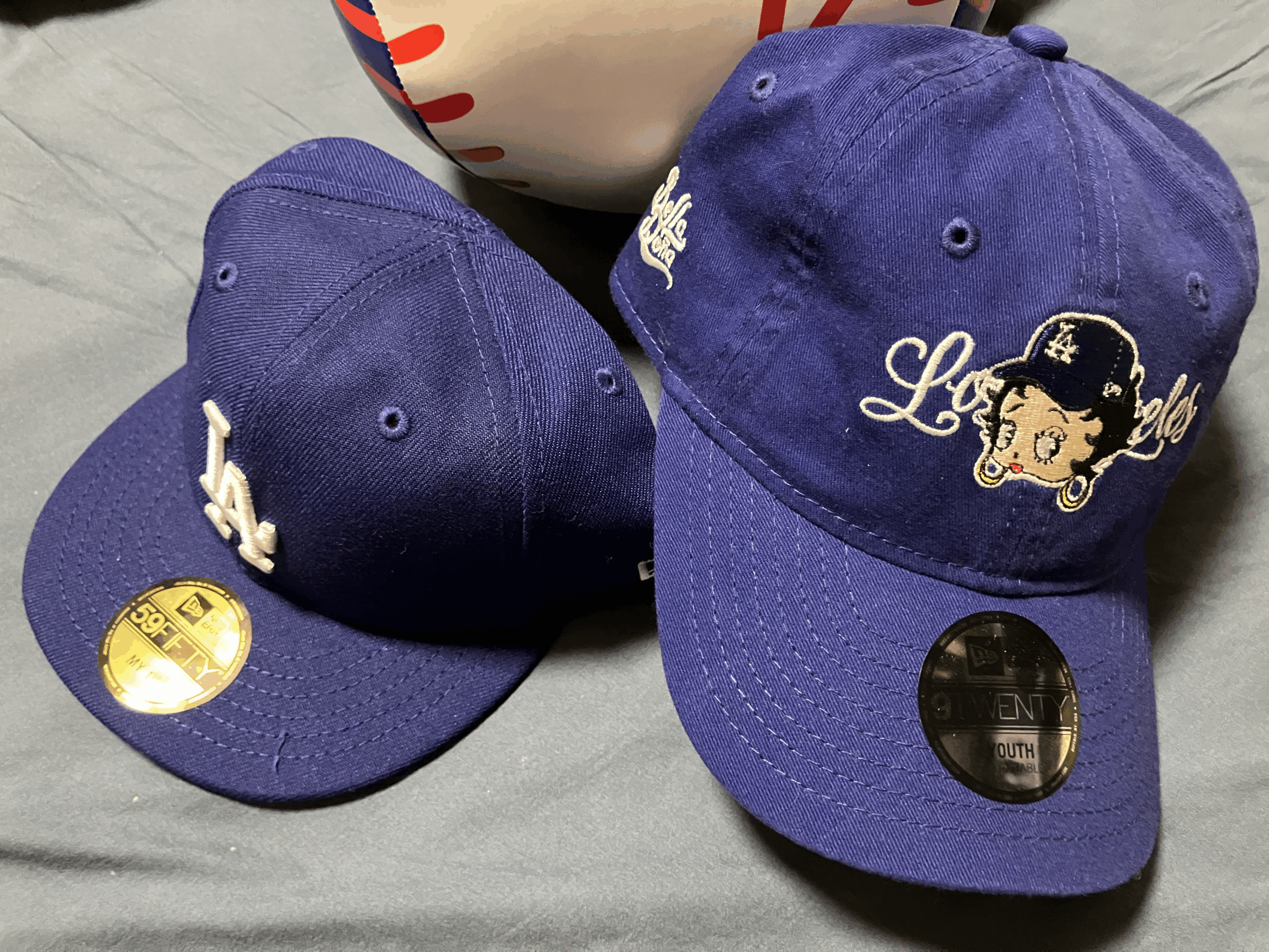 ニューエラのキャップは、坊っちゃん(息子)と私用に無事ゲット。ベティちゃんのデザインが可愛すぎました!(写真は帰国後に撮影)。