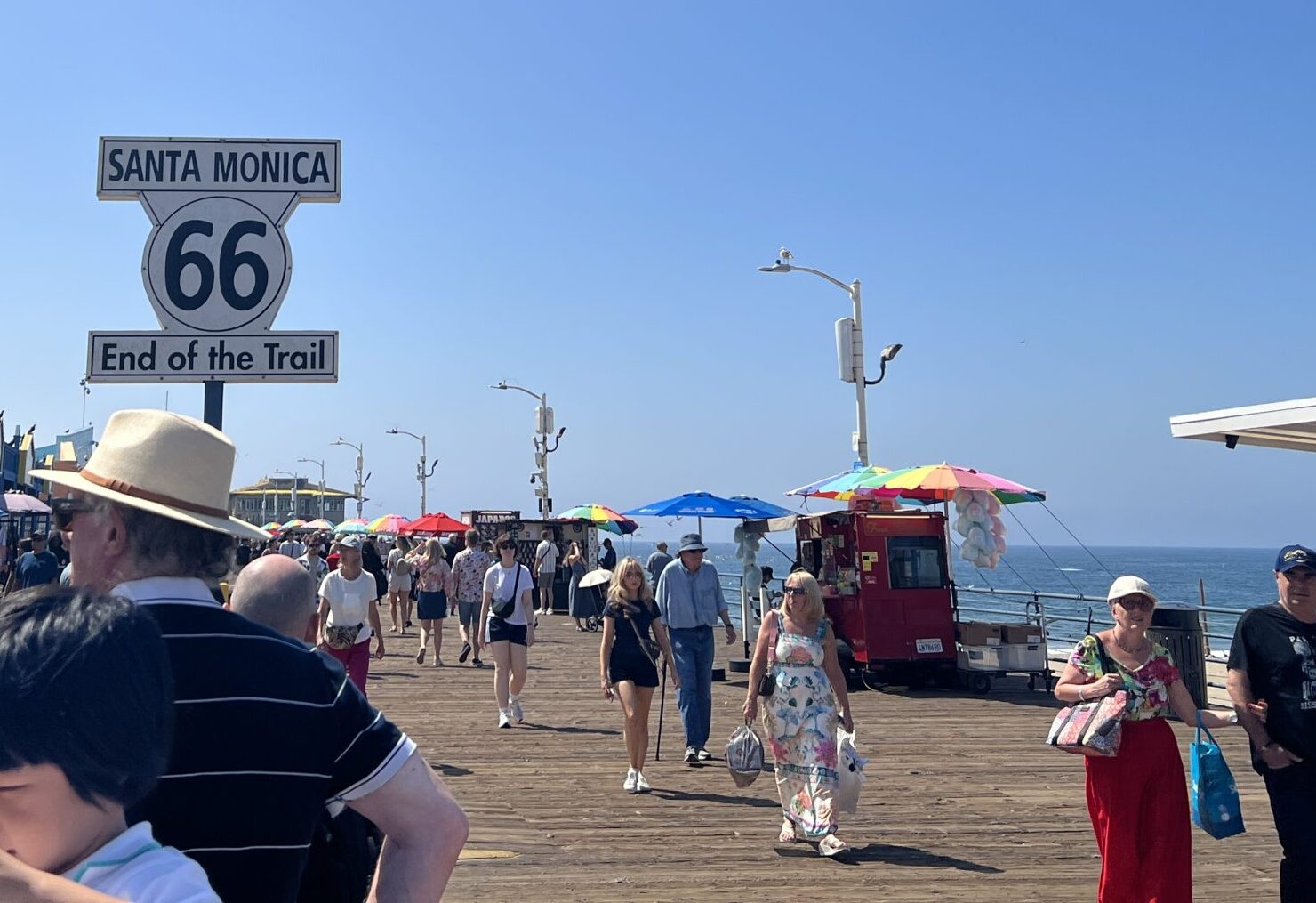 サンタモニカといえば、桟橋が有名ですね。その昔、アメリカを横断していた道路「ルート66」の最西端がここにあります。看板の前には、観光で訪れた人たちが列を作って記念撮影をしていました。