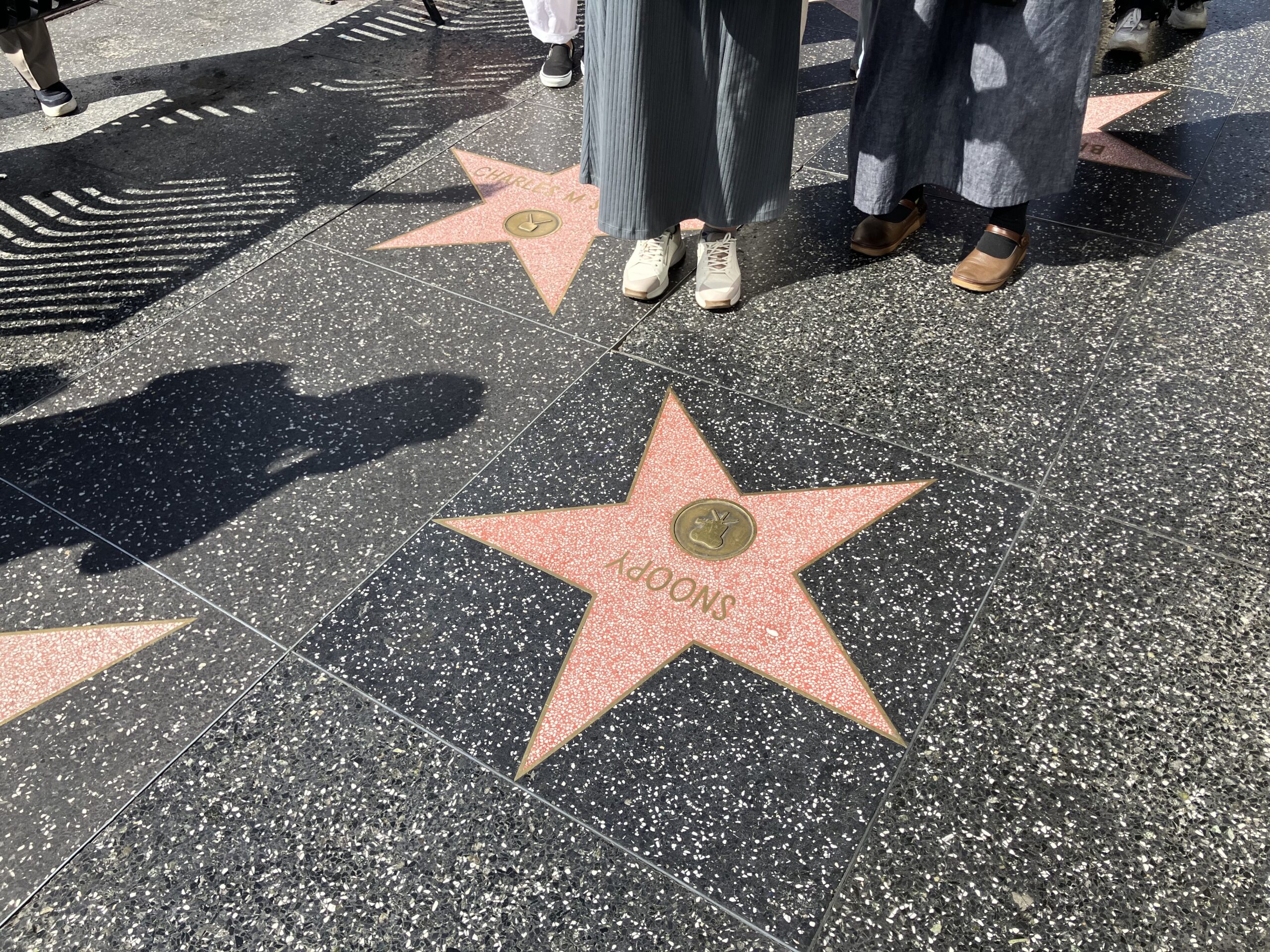 本当にたくさんの著名人の名前が並んでいて、好きな映画の監督や俳優、女優など、探している時間もとてもワクワクしますね。シュルツさんとスヌーピーは、ブールバード通りとニュー・シカモア・アベニューの交差点にあります。著名人の手形や足形があるチャイーニーズ・シアターから真っすぐ歩き、1つ目の交差点にはハリウッドで1番人気のお土産ショップ「La La Land」、2つ目の交差点を渡る前のところにシュルツさんとスヌーピーの星形があるのでわかりやすい場所です。
